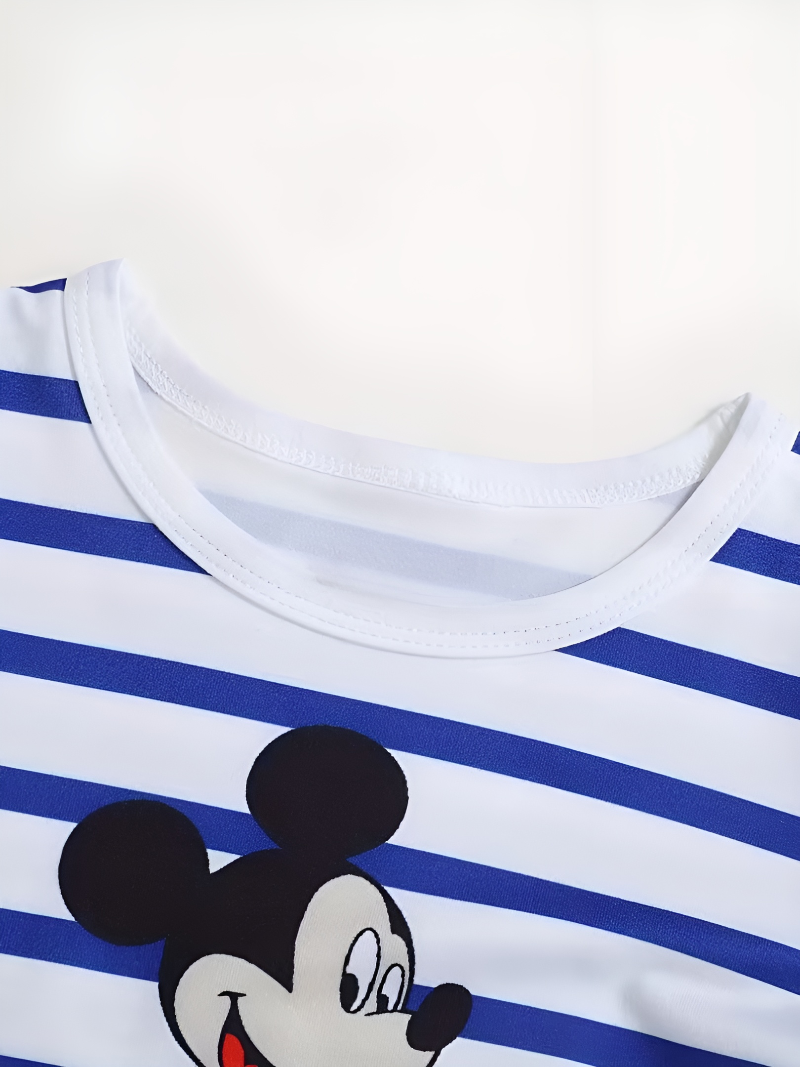 The Mickey Mouse Striped Cartoon Print Kids Pajama Set provides a coordinated appearance designed for everyday home routines. This two-piece outfit includes a long-sleeve top and matching pants, each decorated with bright striped patterns and animated character artwork. The combination offers a consistent theme that many children appreciate, especially those who enjoy familiar illustrated figures.