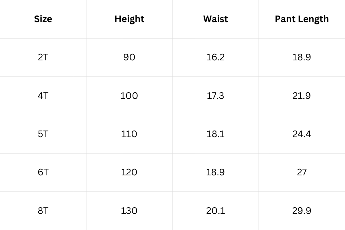 Pant Size Chart (Inches):