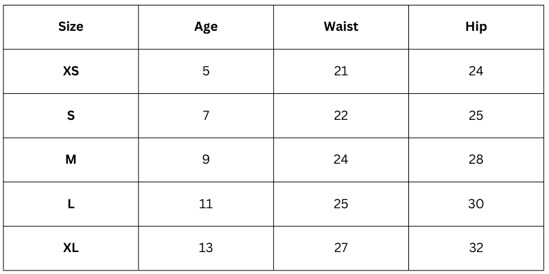 Size Chart (Inches):
